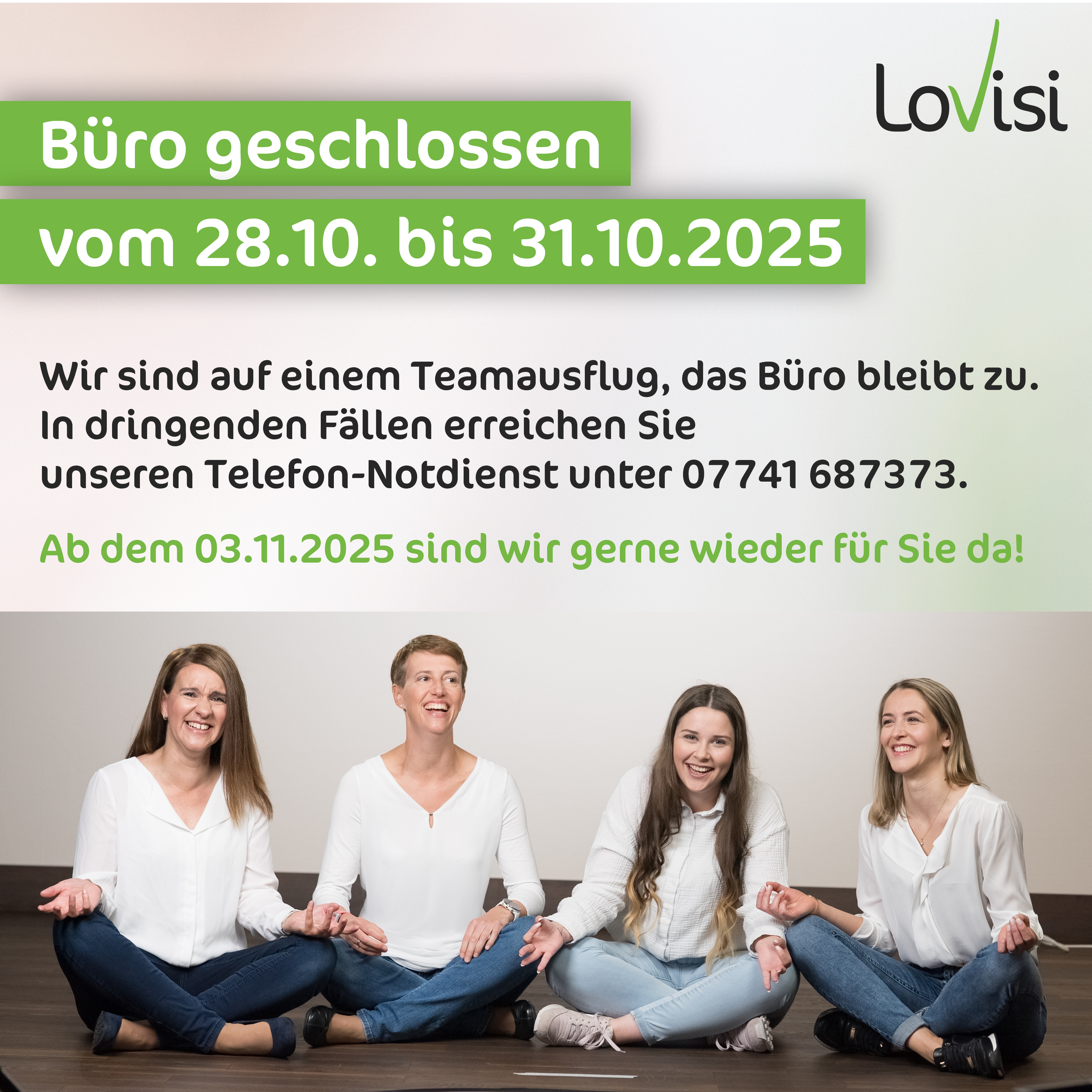 Liebe Kunden/Kundinnen, unser Büro bleibt am Donnerstag, 16.10.2025 aufgrund eines Teambuilding-Tags geschlossen. Ebenso sind wir…